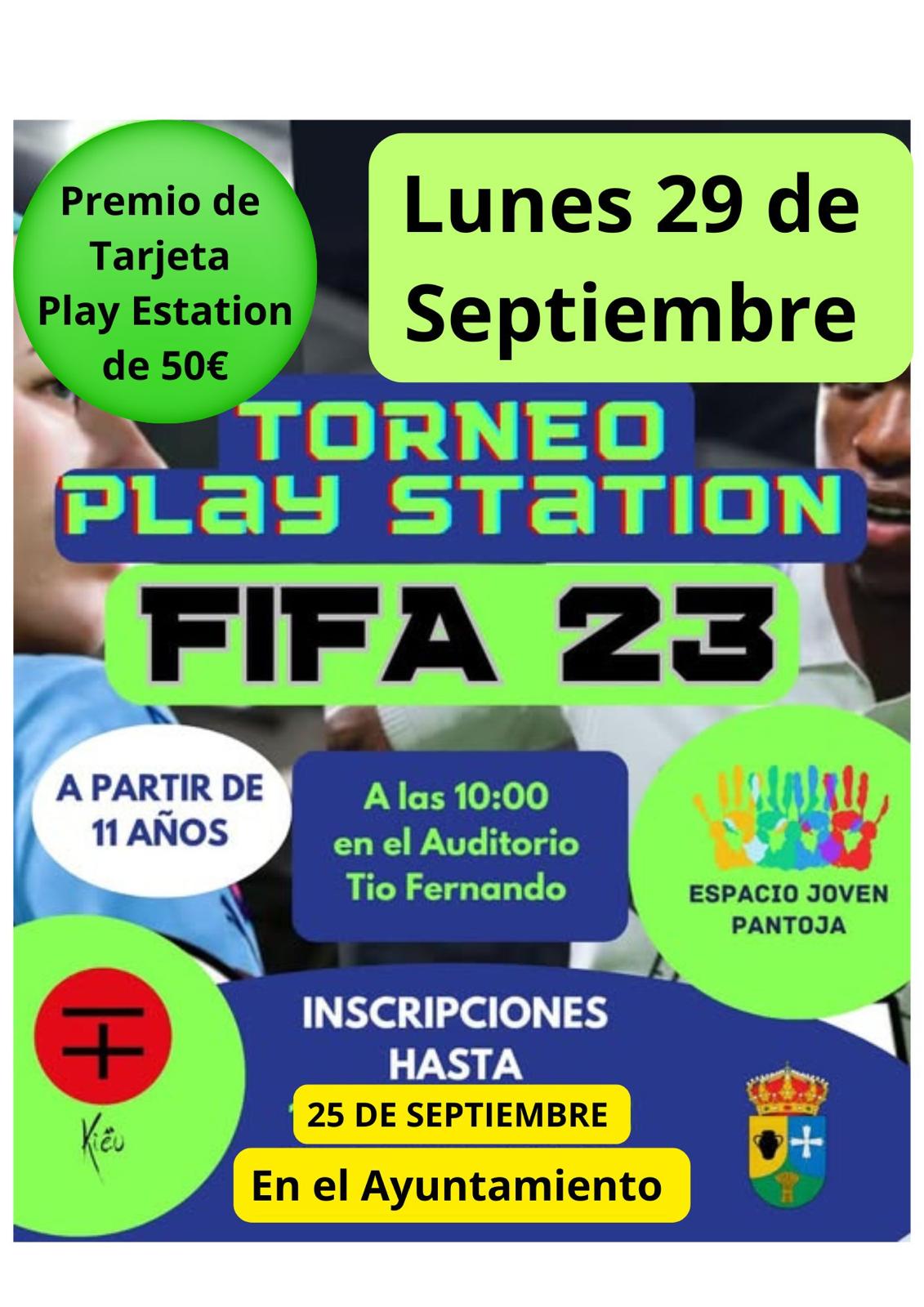 Enlace de Descarga de las Bases: https://pantoja.es/bases-de-concursos/ La inscripción para el torneo de Play Station FIFA 2023 se hará en las OficinasMunicipales, Plaza de España, 1 de Pantoja, de lunes a viernes en horario de 9:00 a14:00 horas, desde el día 10 al 25 de septiembre. La competición, el 29