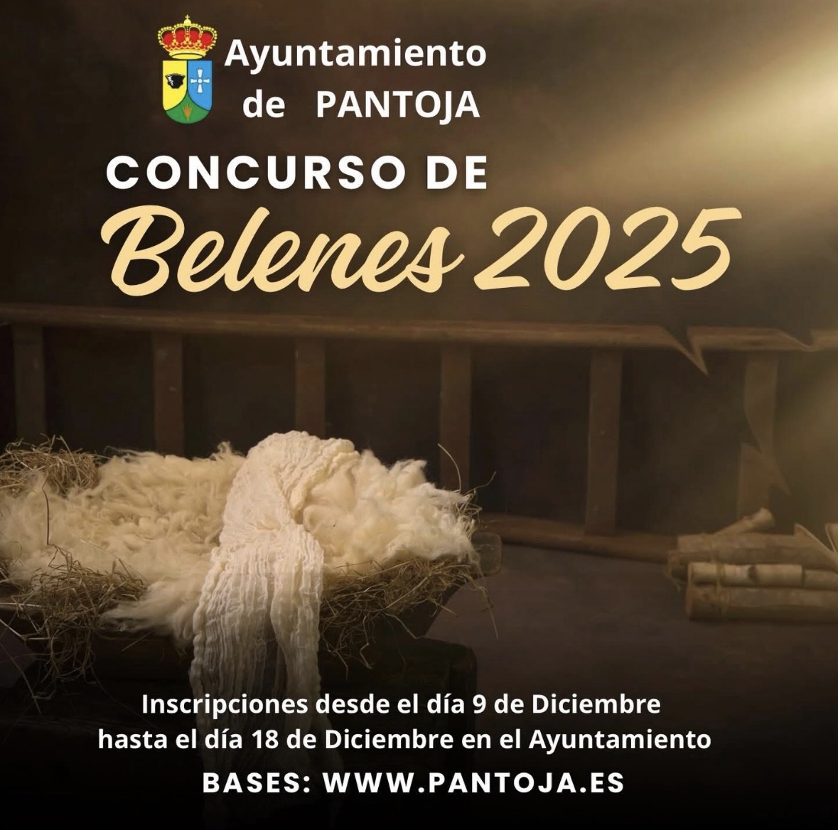 Concurso de Belenes 2025. Inscripciones desde el día 9 al 18 de Diciembre. El día 18 de Diciembre a las 20:00 horas el jurado visitará los Belenes participantes y se darán a conocer los ganadores y se hará de la entrega de premios el día 24 en el evento Migas