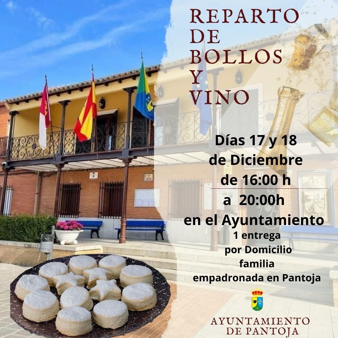 Días 17 y 18 de Diciembre de 16:00 a 20:00h en el Ayuntamiento. 1 Entrega por domicilio y Familia empadronado en Pantoja.